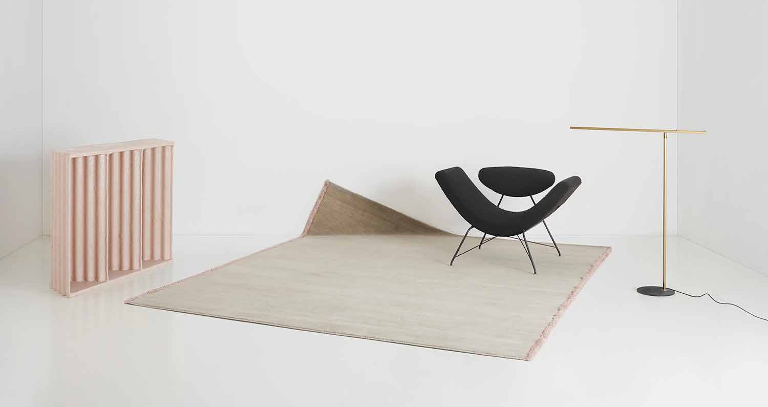 The innovative aspect is given by the fringing edges composed of a thick natural silk thread available in different shades which delimit the sides of the carpet creating a game of textures and volumes as a frame.