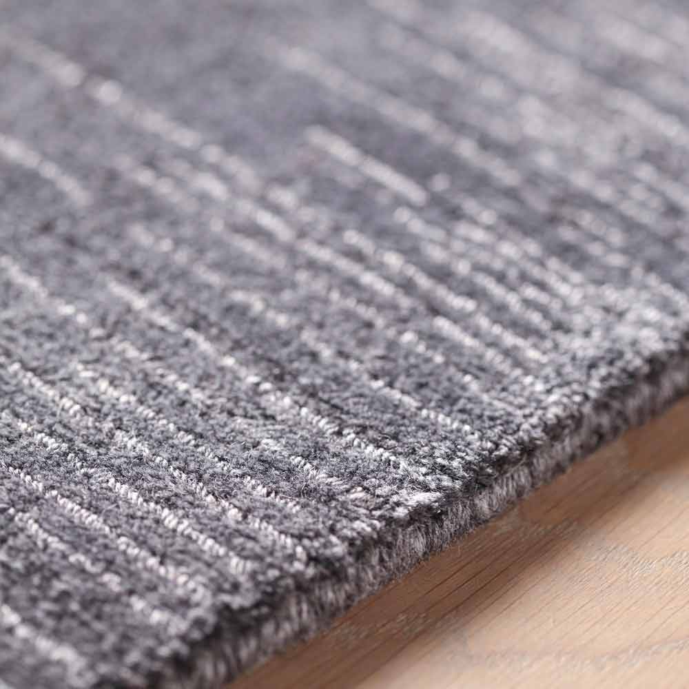 Modern design carpet in wool, viscose and cotton available in different colours and two big dimensions with a striped surface.