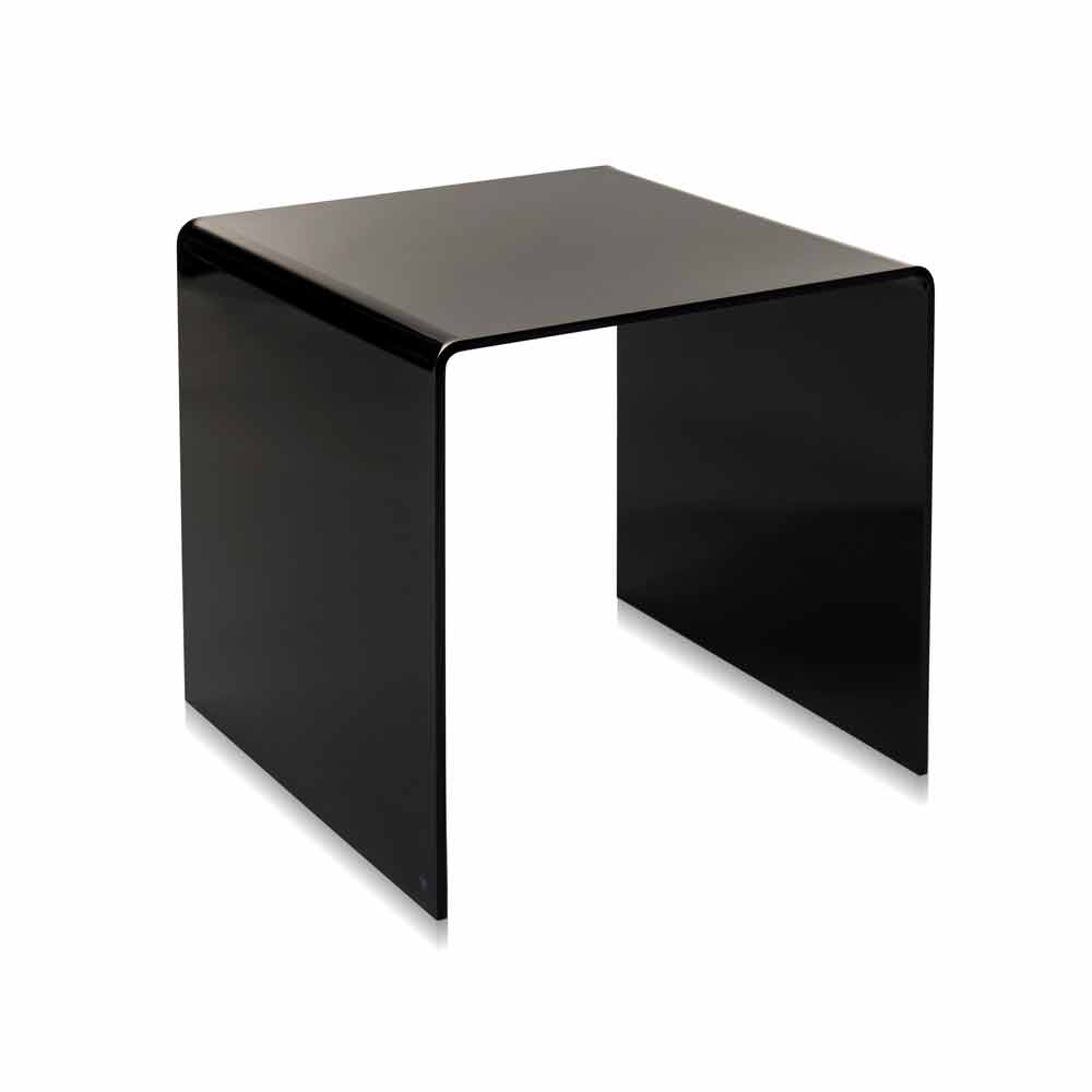 Terry Small is made of 100% PMMA plexiglass from virgin polymers and it can be used both as a coffee table or as a bedside table. Its design is inspired by the geometries of the '80s. Laser cut and bent at high temperatures. Self supporting. It matches the Terry Big side table.
