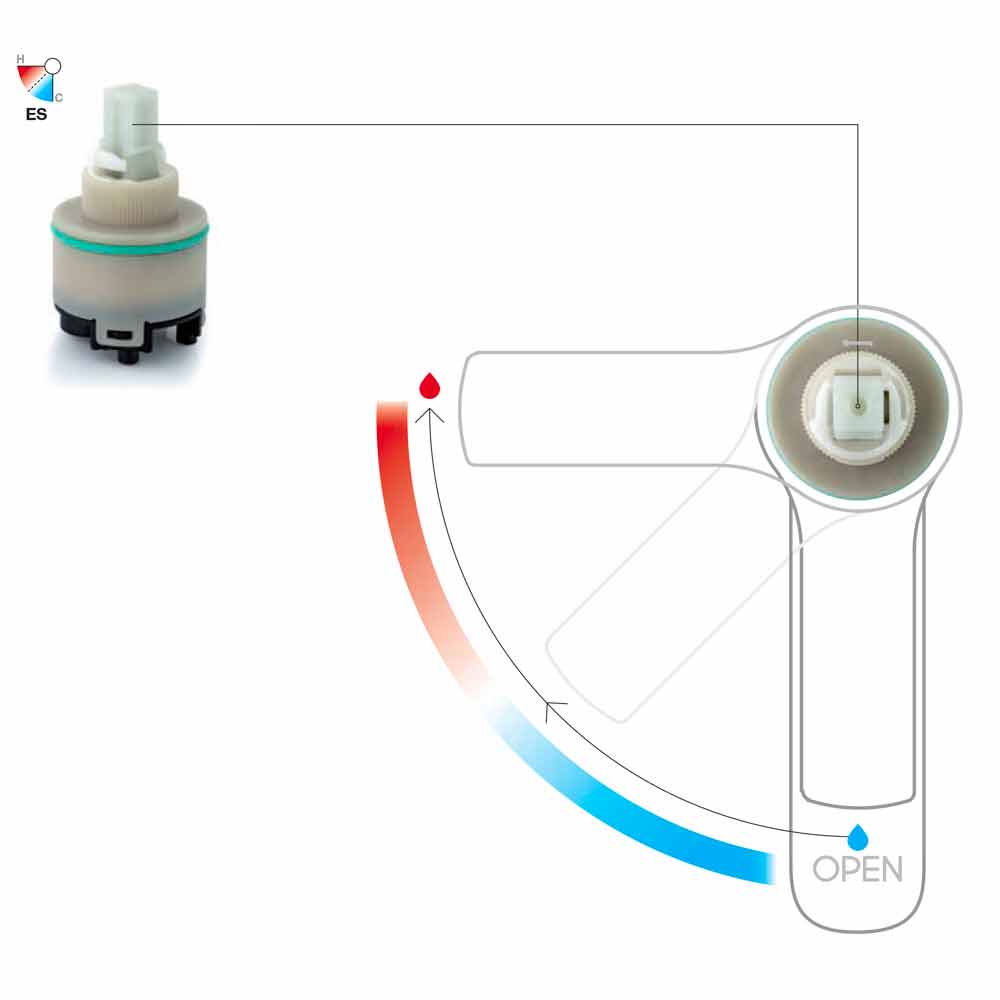 ES supplies cold water when the lever is raised in the central position thus avoiding the request for hot water to the boiler thus allowing a consequent energy saving.