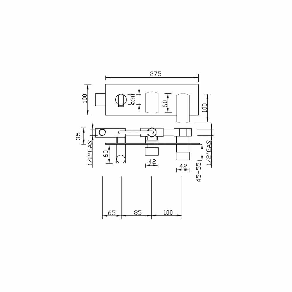Chrome built-in shower mixer with diverter complete with built-in part and external parts. Complete with shower kit.