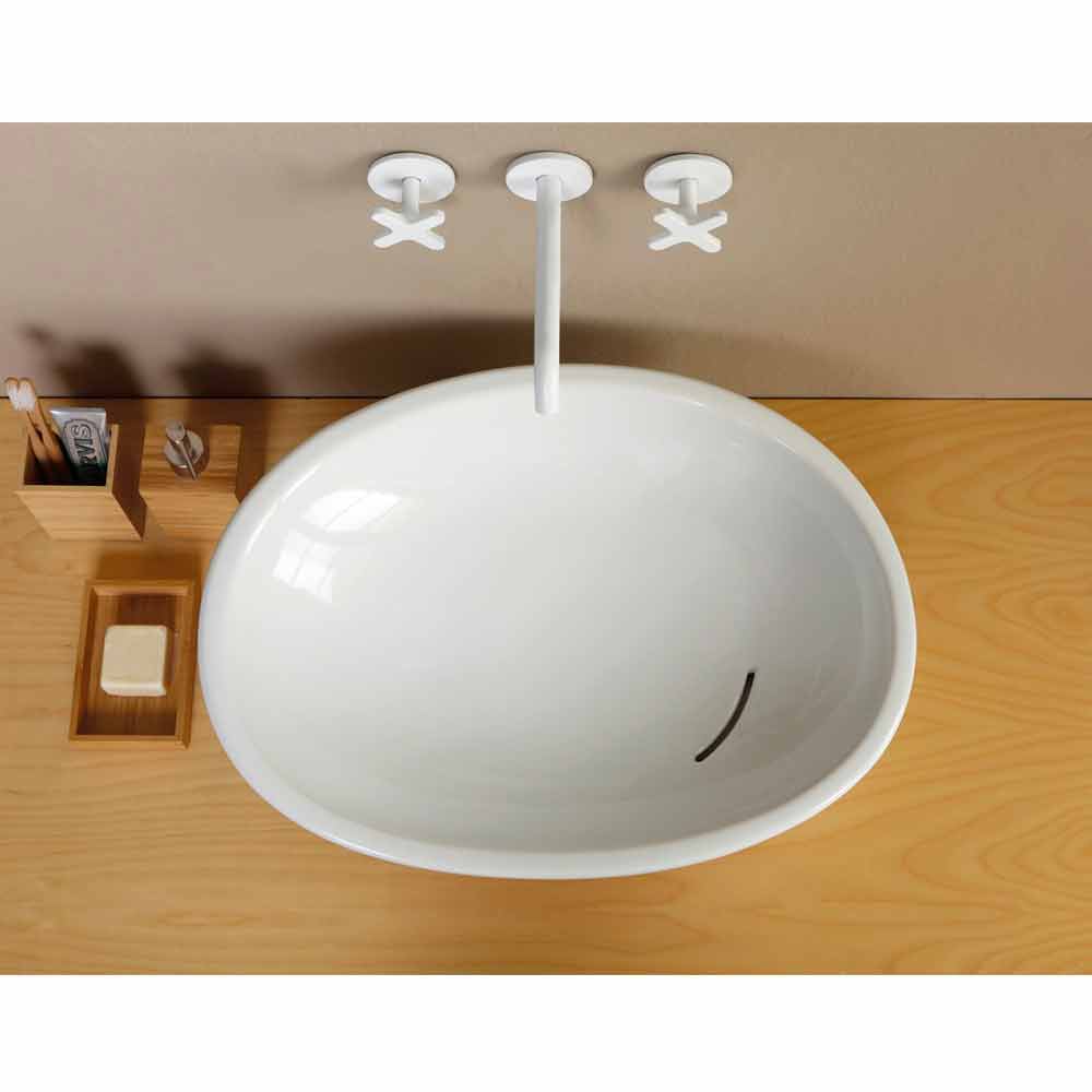 Glossy ceramic design tilted countertop washbasin made in Italy