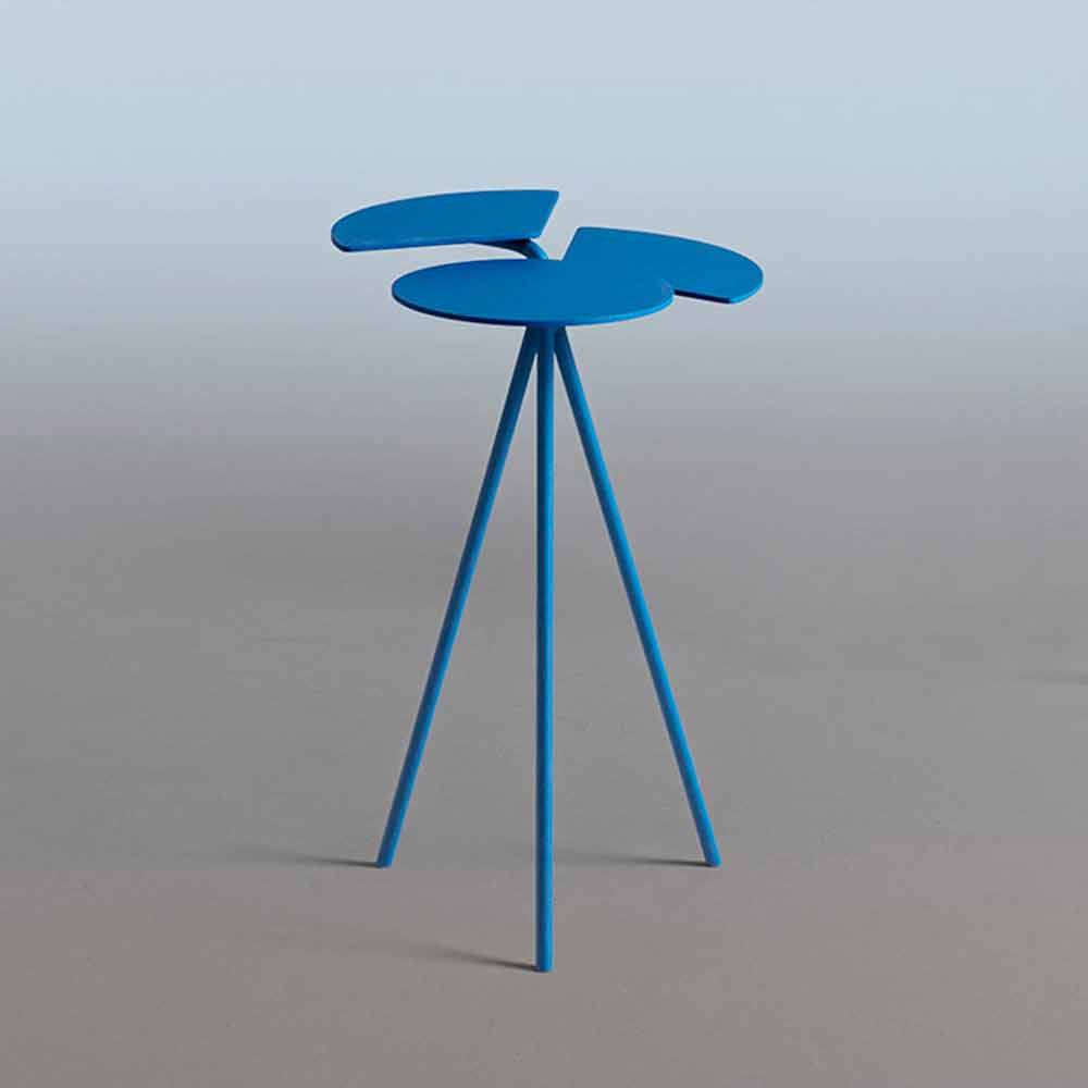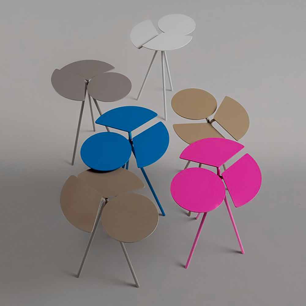 Round tripod coffee table for living room, modern design in lacquered sheet metal in various colours, original top made in Italy.