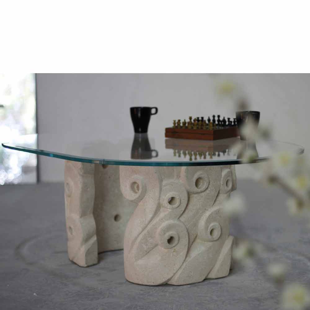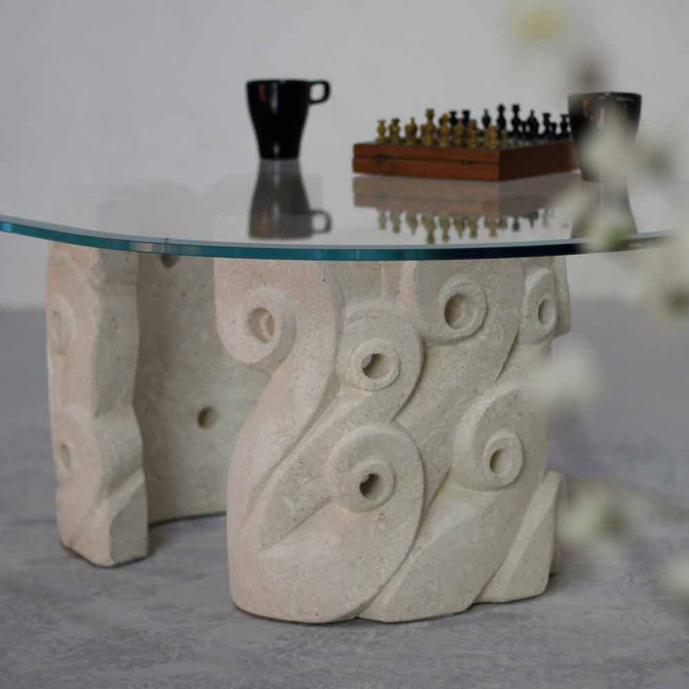 Classic design coffee table made of natural stone and crystal Lindos