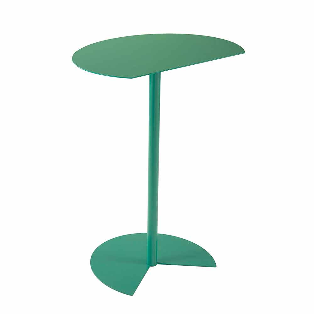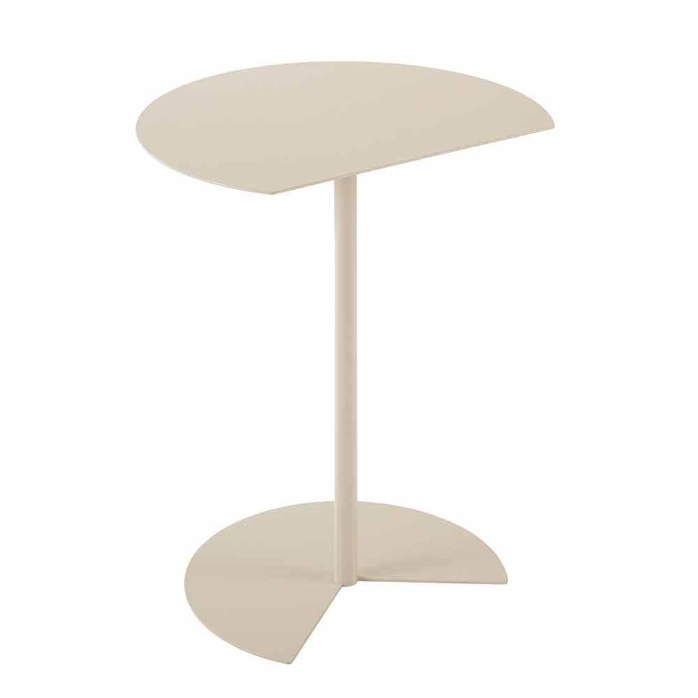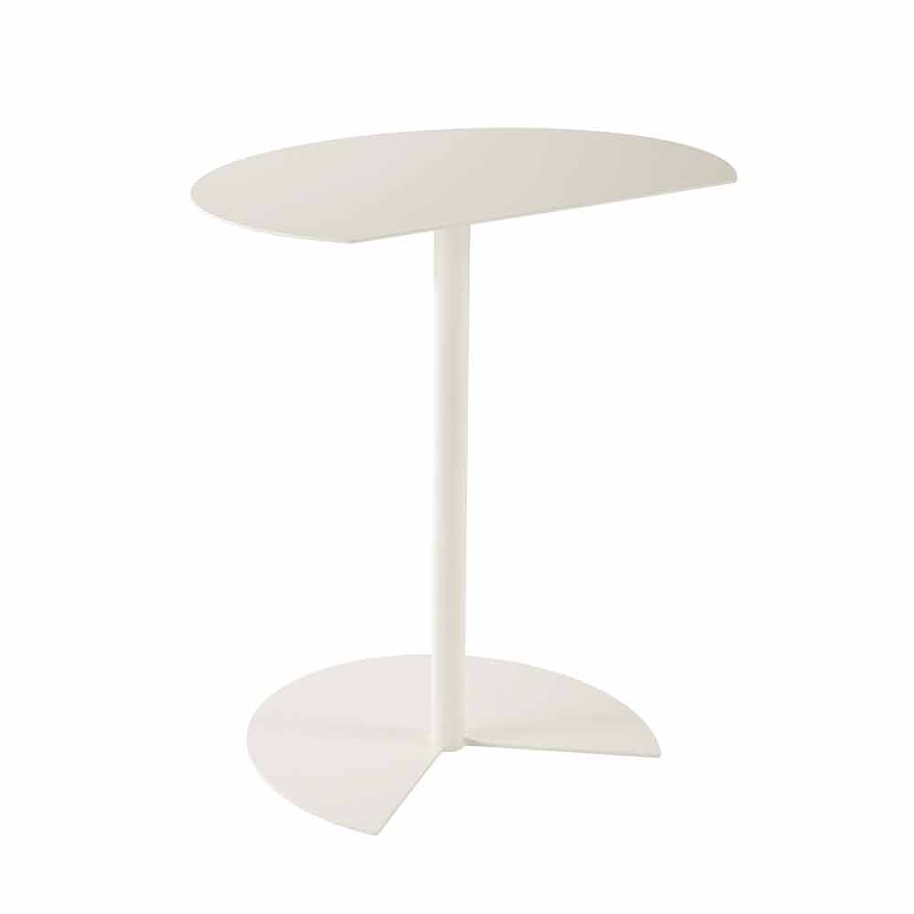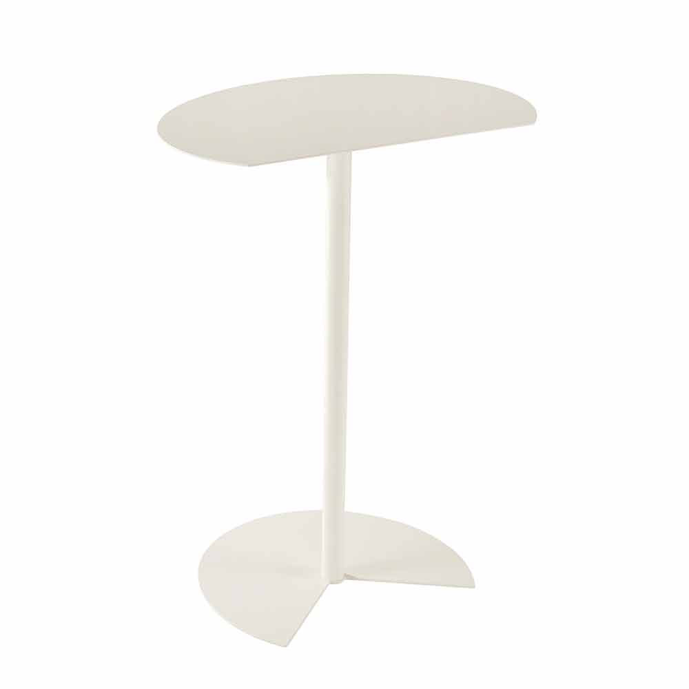 outdoor coffee table is characterized by the support surface that recalls the roundness of the circle broken by a clean cut so that it can be placed attached to a wall, to optimize space, or to be coupled to a similar one, to a highly functional