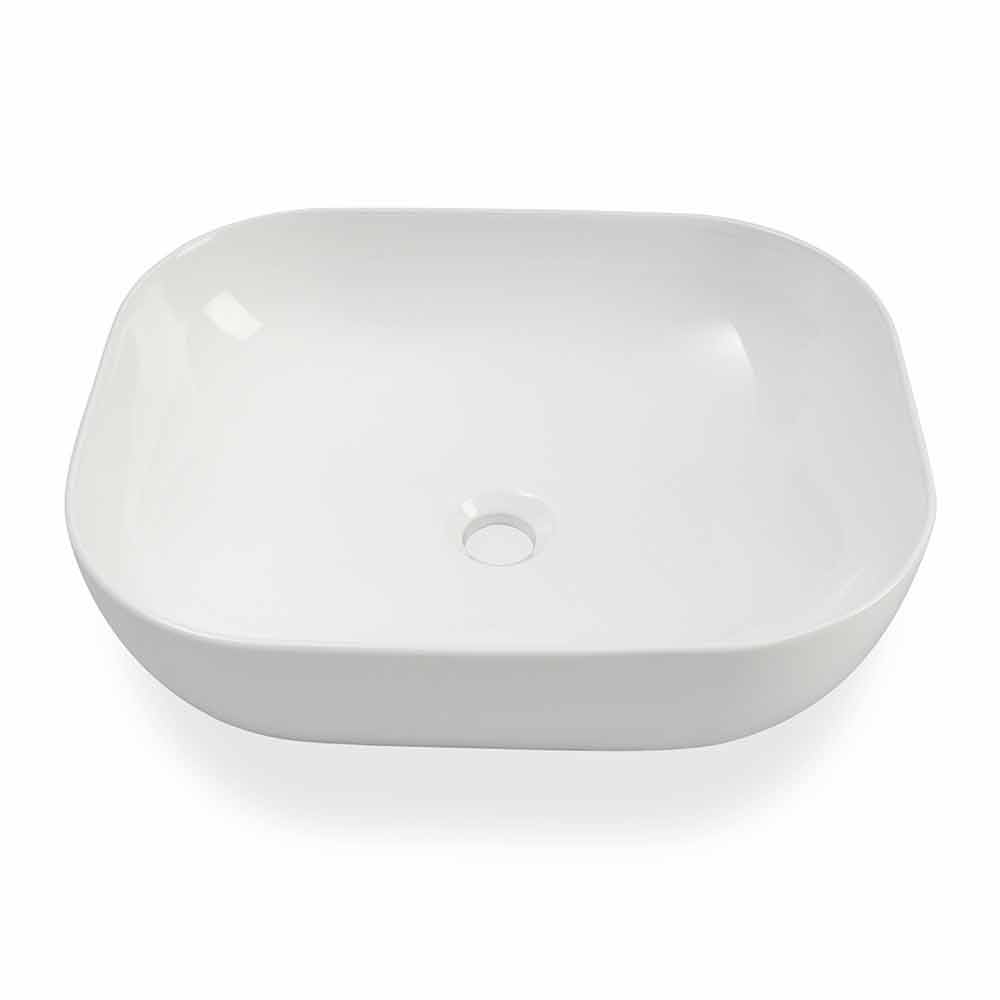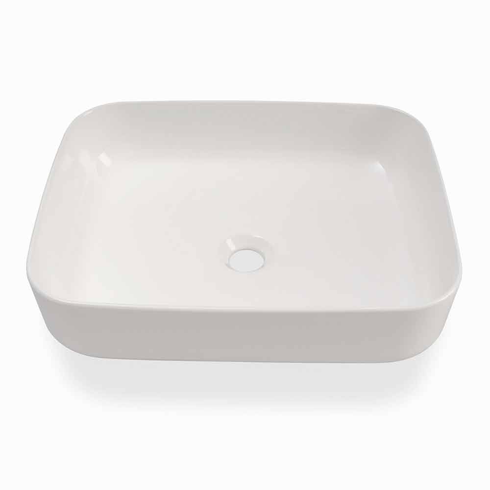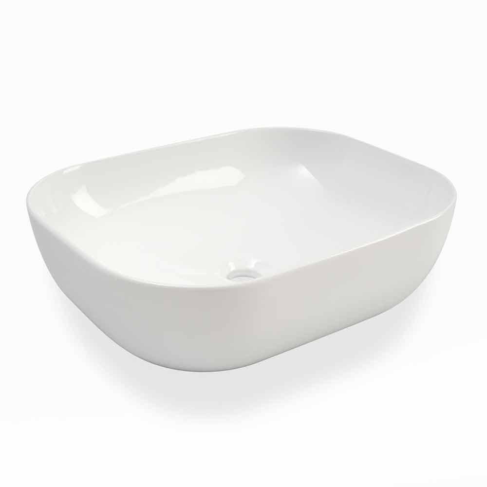 Modern style countertop washbasin handcrafted in Italy in glossy white ceramic.
