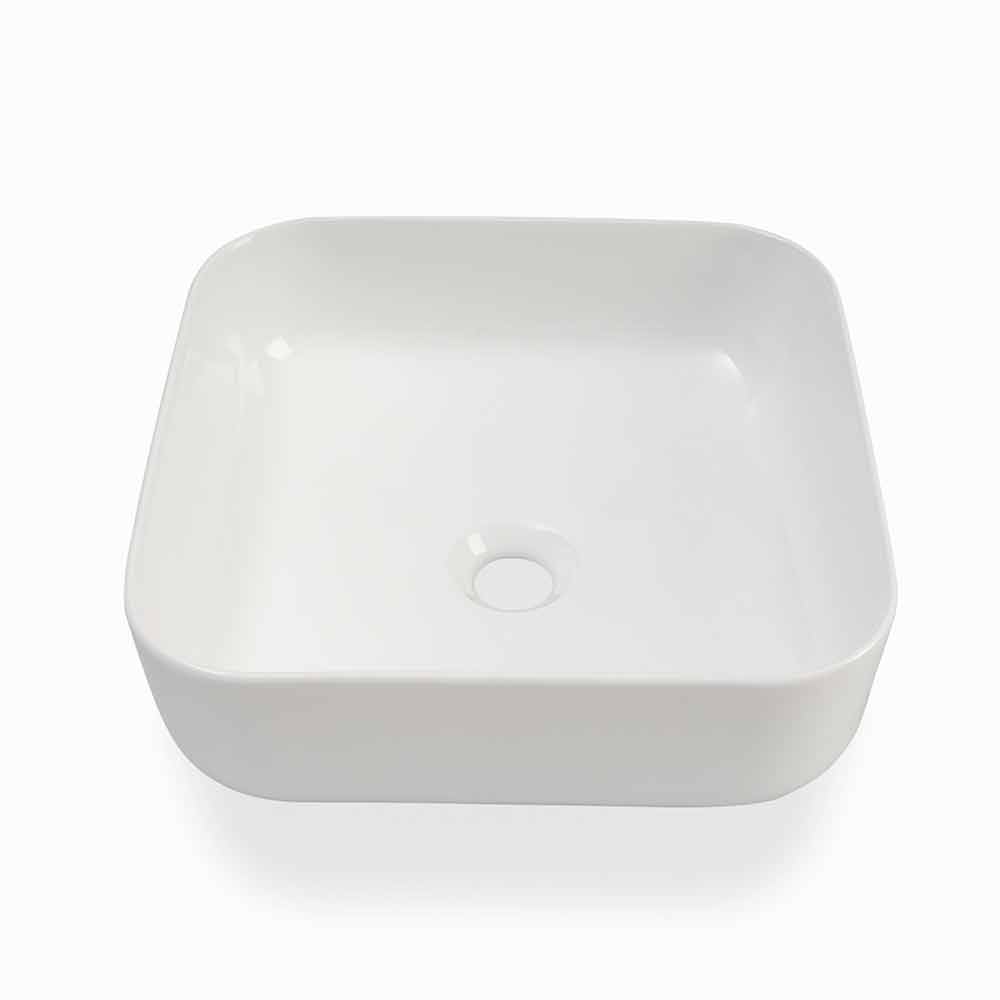glossy white ceramic. Available in three different sizes:- L 50 x D 39 x H 13cm;