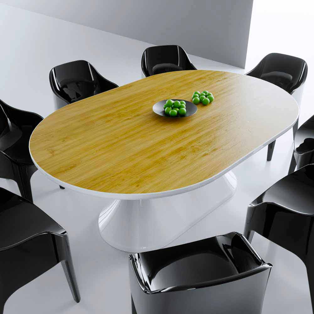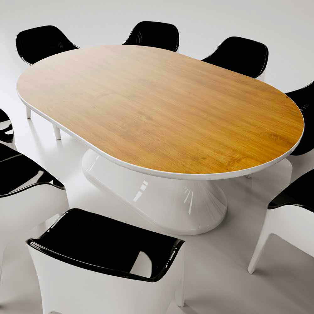 A reinterpretation of the organic dining table born thanks to the elongation of its central stem that characterizes it.