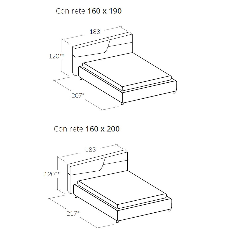 - L183 x H120 x D209 cm (for 160x190 bed base)