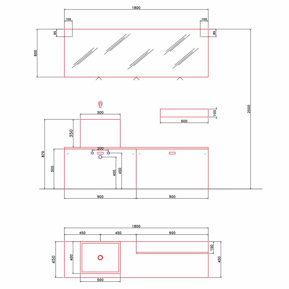 3 L.180 x D.45 x H.2 cm