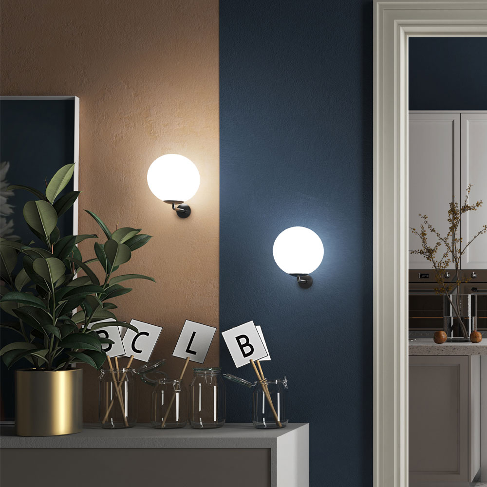 Wall lamp with round diffuser in hand blown glass in Venice.