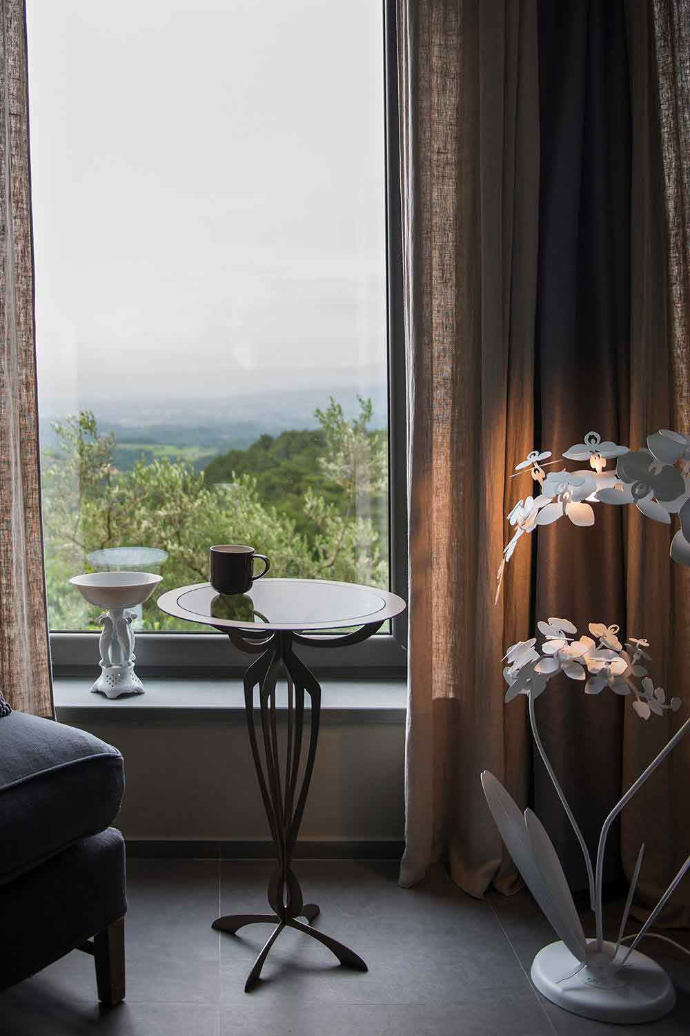 floor lamp is outlined by refined and decorative orchid-shaped lines perfect to be integrated into any ambient style from classic to modern.
