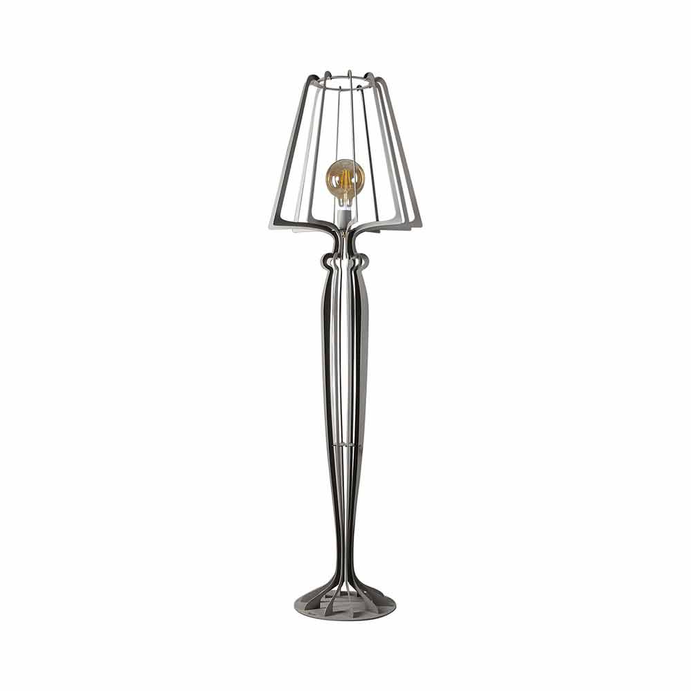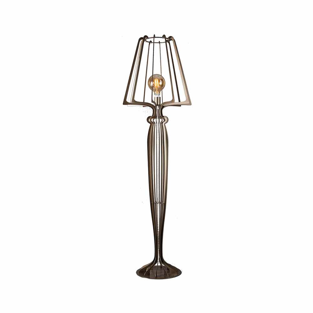 floor lamp is outlined by refined and elaborate lines perfect for integrating into any style of environment, from classic to modern.