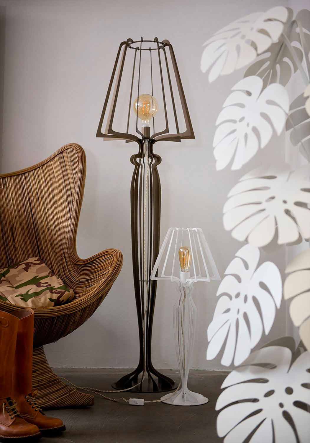 Modern design floor lamp handcrafted in Italy in mud, white, bronze or gold iron.