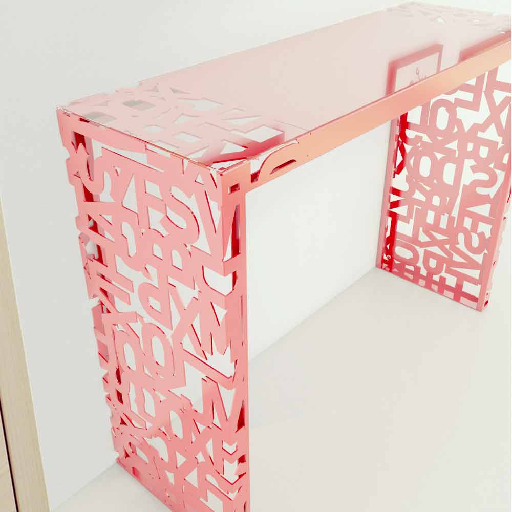 Entirely made of metal and glass, Konsolle contains its function inside its name.