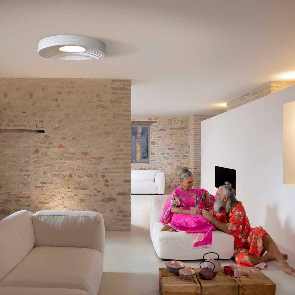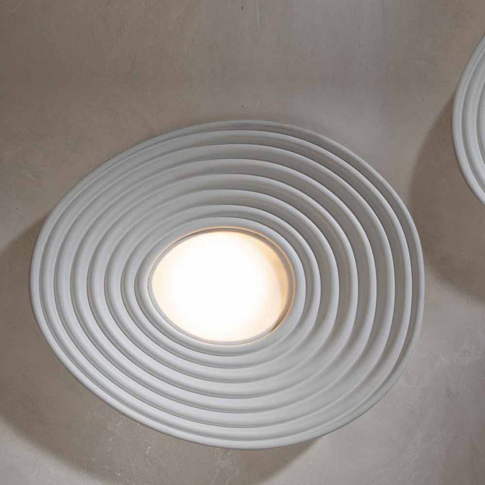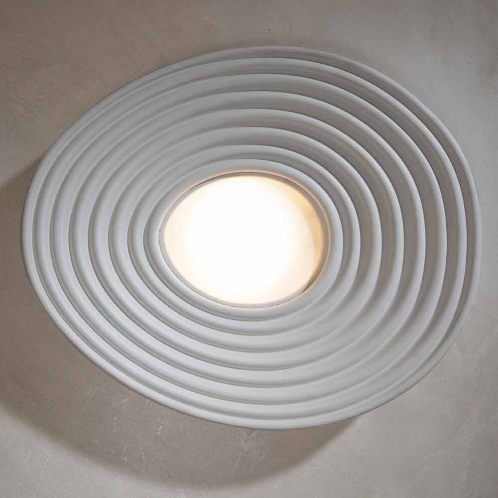 The lamp is made of opaque white plaster and white pmma diffuser for an entirely Italian design which, through unconventional experimentation and continuous research between tradition and modernity , is able to amaze, dare and excite, allowing you to express your emotions through an original and personal decorative use of light.