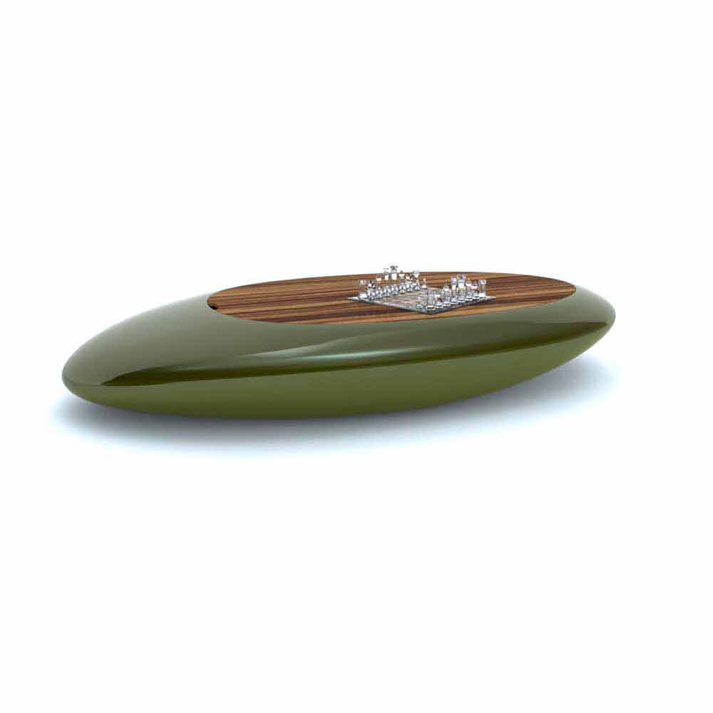 It has a rounded and at the same time slender conformation, tapered towards the other on one side and downwards on the other.