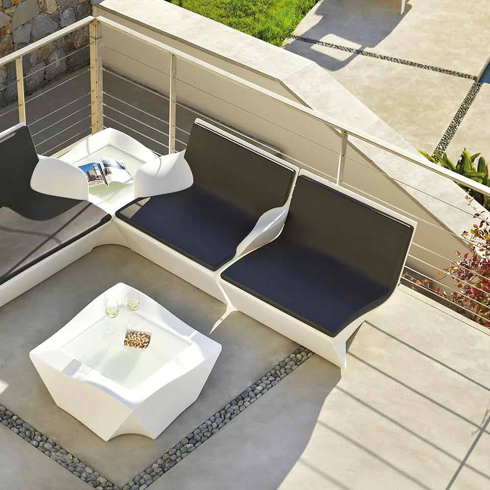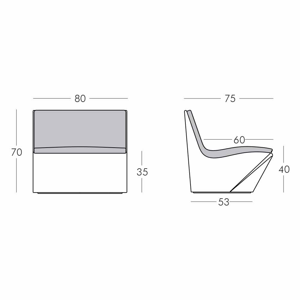 Made of polyethylene Kami Ichi is available in the standard version in thirteen different colours. It adapts to both indoor and outdoor furnishings and offers the possibility to also purchase cushions made of polyurethane available in three different colours: