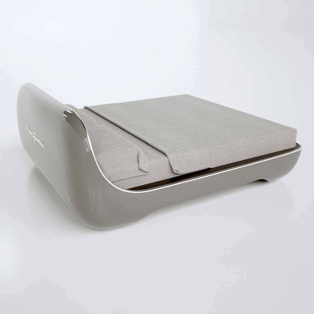 When you continue to dream even when you are awake ... A futuristic and enveloping bed with a shell made entirely of Solid Surface; ideal in a loft and also positioned in the center of the room. Avantgarde winks at the sports cars of our time trying to capture the best of their futuristic lines and their fine finishes, to be found in its padded and leather-covered headboard or in the optional silver-colored border or in the color chosen by the customer .