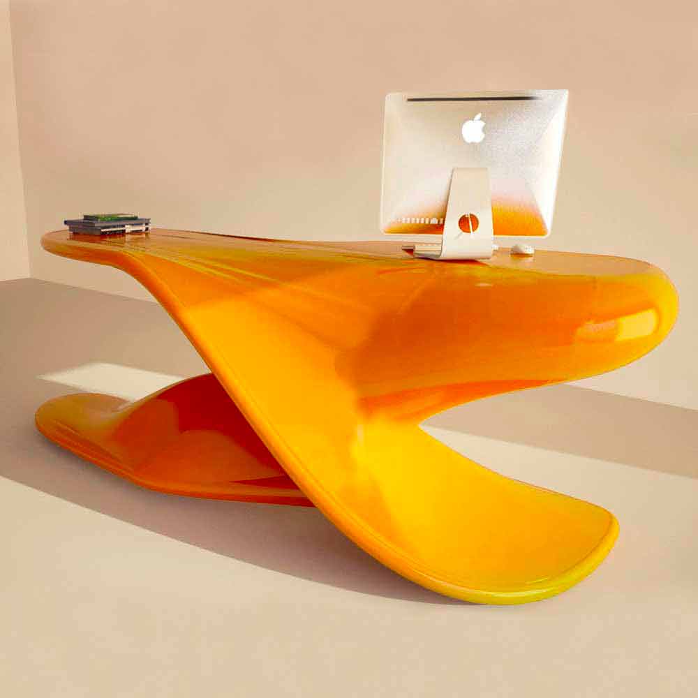 The theme of the Archer office desk is interpreted as matter within the space, which suggests a certain dynamism within the office room.