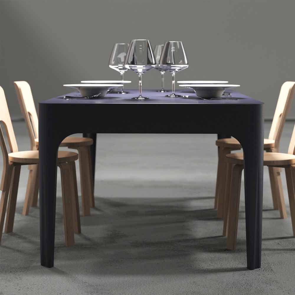 Table made from a single element, it has clean and linear shapes which give it a modern and current look. Characterized by the important edge and the cut creates shape to the legs. It fits well as a dining table or desk in a modern environment or with classic references such as frames and stucco. Available in two color variants: midnight blue (RAL5011) or white (RAL9003), choose the one that best suits you!