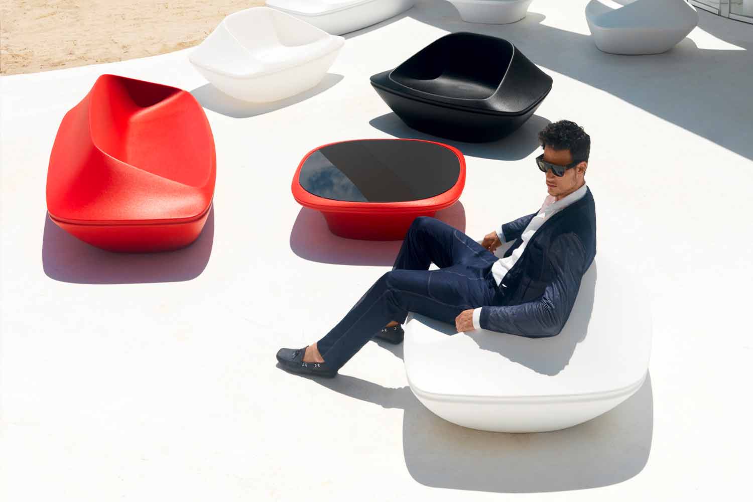 The Ufo collection it is characterized by the opposition of negative and positive forms. This creative approach has given birth to a monolithic, fluid and sculptural line. His articles allow you to create different combinations easily adaptable to outdoor spaces thanks to its elegant and resistant materials. The colors, the range of finishes and the internal lighting widen the possibilities of creating different environments.