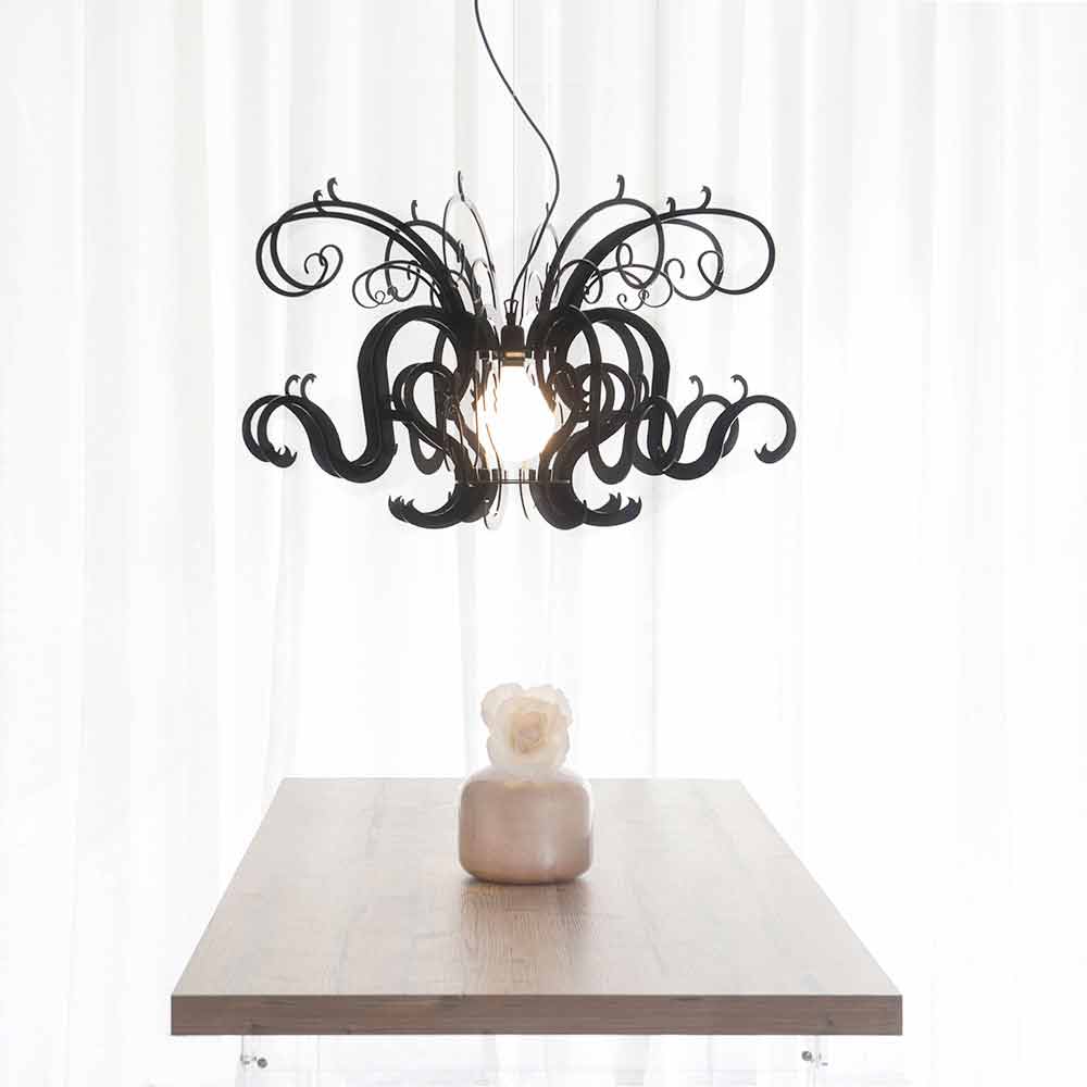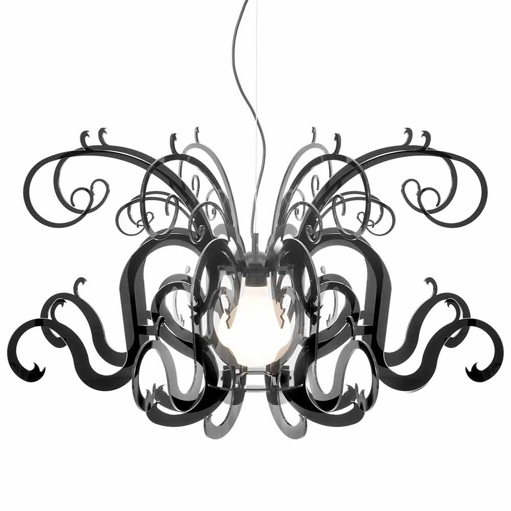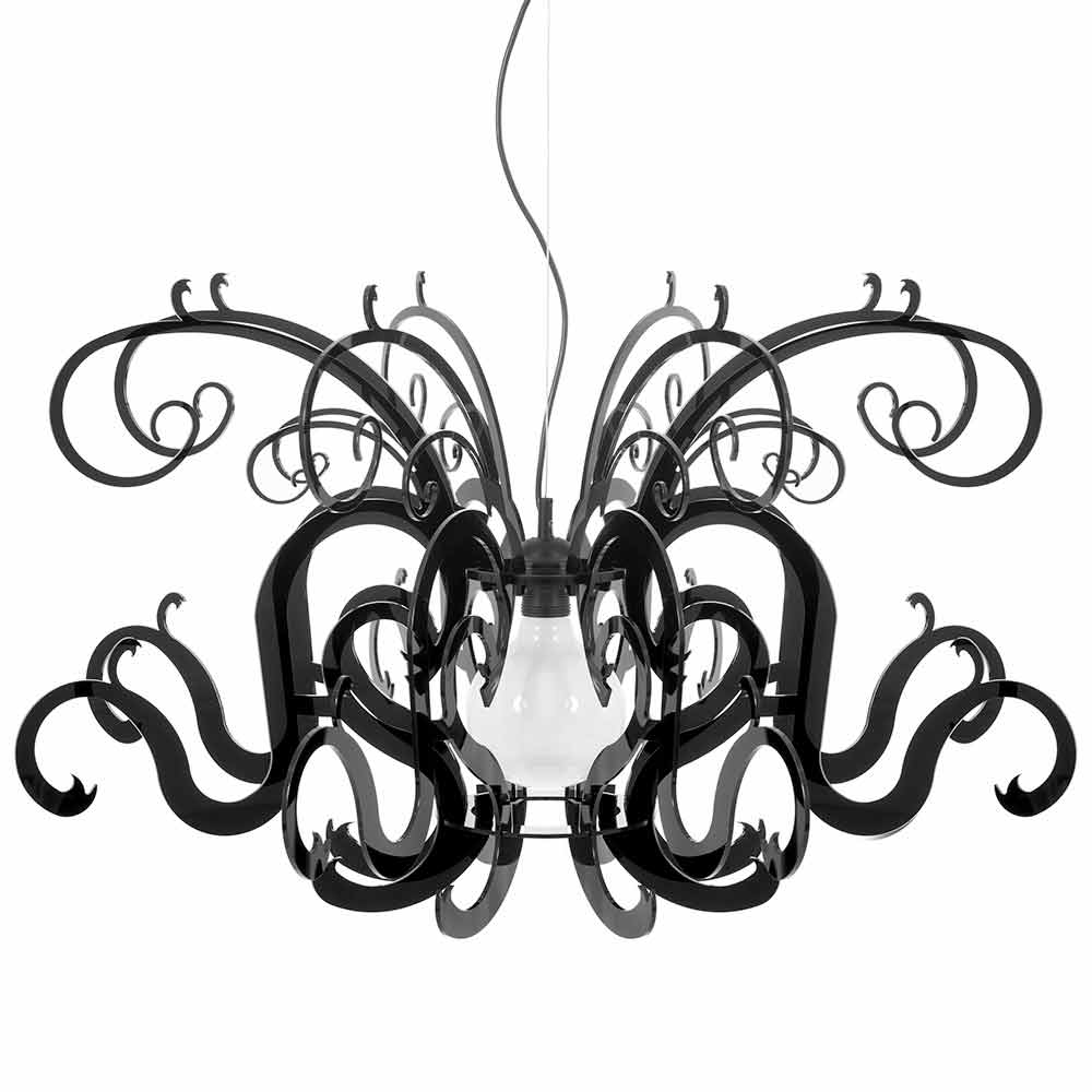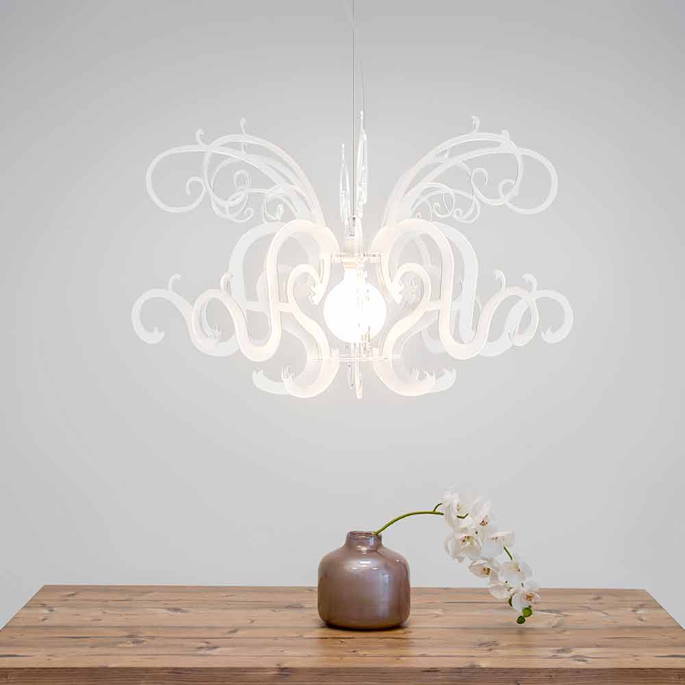 Malito is a majestic chandelier made of virgin polymer PMMA plexiglass in white or black.