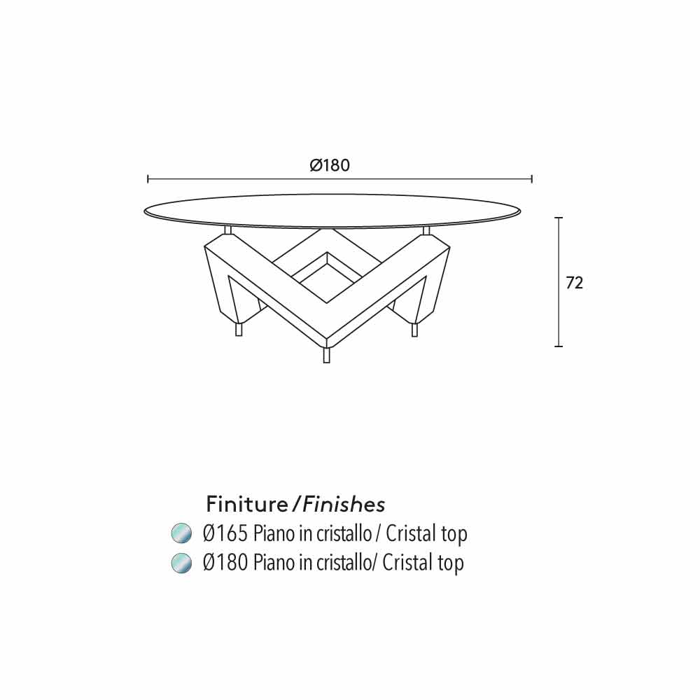 Modern design round dining table with crystal top Bao, made in Italy