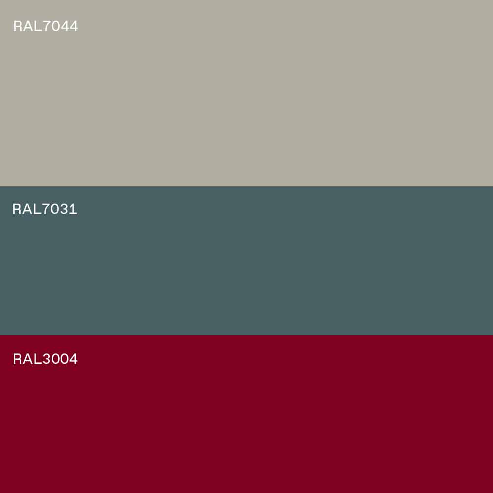 - legs in gray RAL7031 + burgundy cross RAL3004 + top in dove gray RAL7044