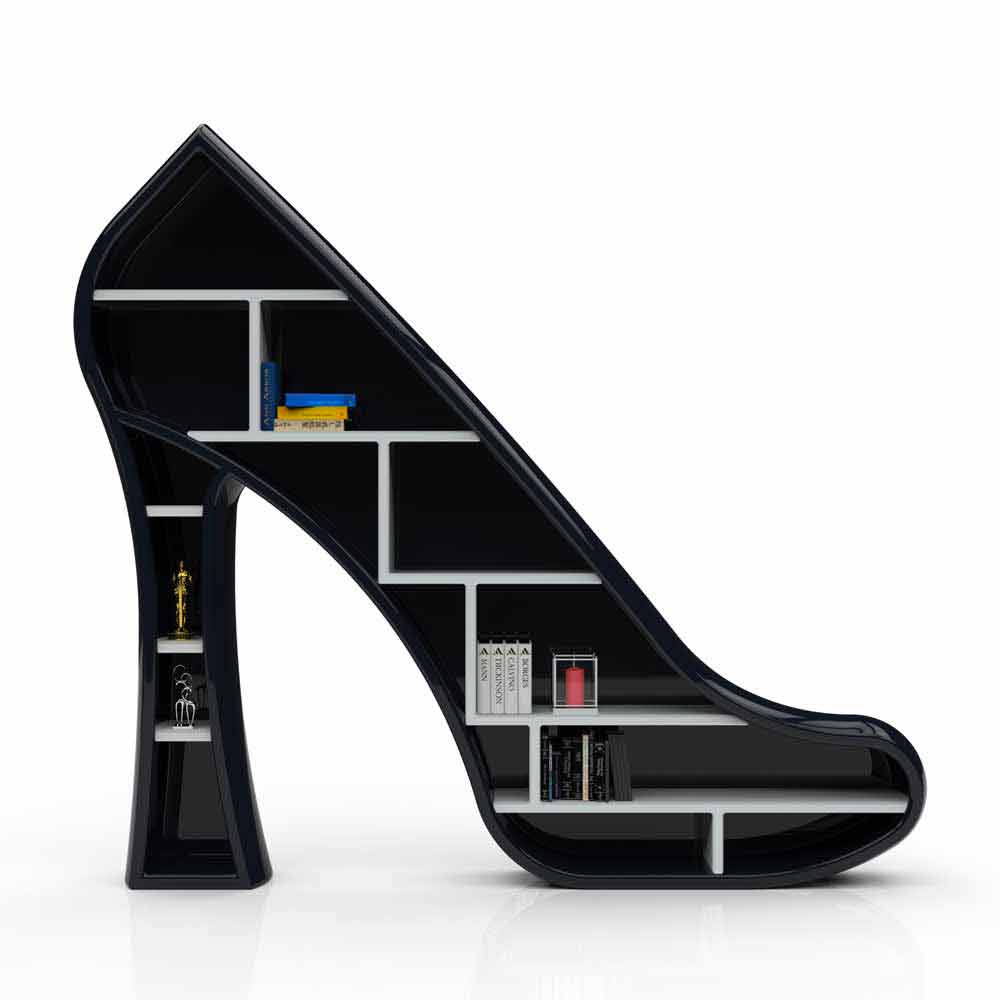 Design object or whim? Bookcase Lady is nothing more than the transposition towards the deisgn of the feminine object par excellence: the shoe with the heel.