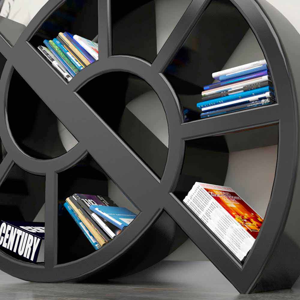 This design bookcase takes full advantage of practicality and beauty, with a glossy lacquered finish of every type of color, it will be the predominant and undisputed piece of furniture.
