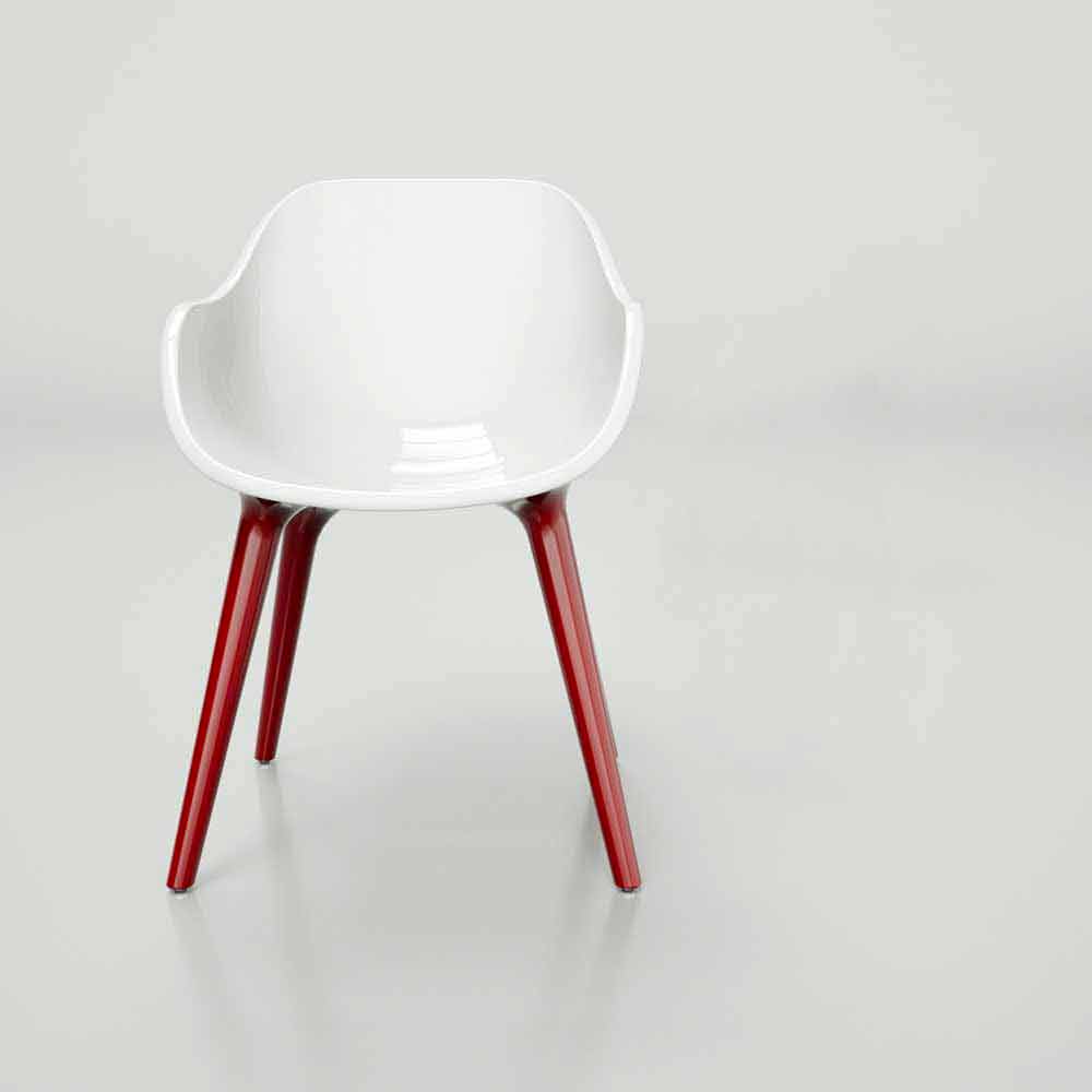 The legs merged into the shell and its soft lines, highlighted by multiple color combinations, give life to a versatile, chameleonic and timeless chair.