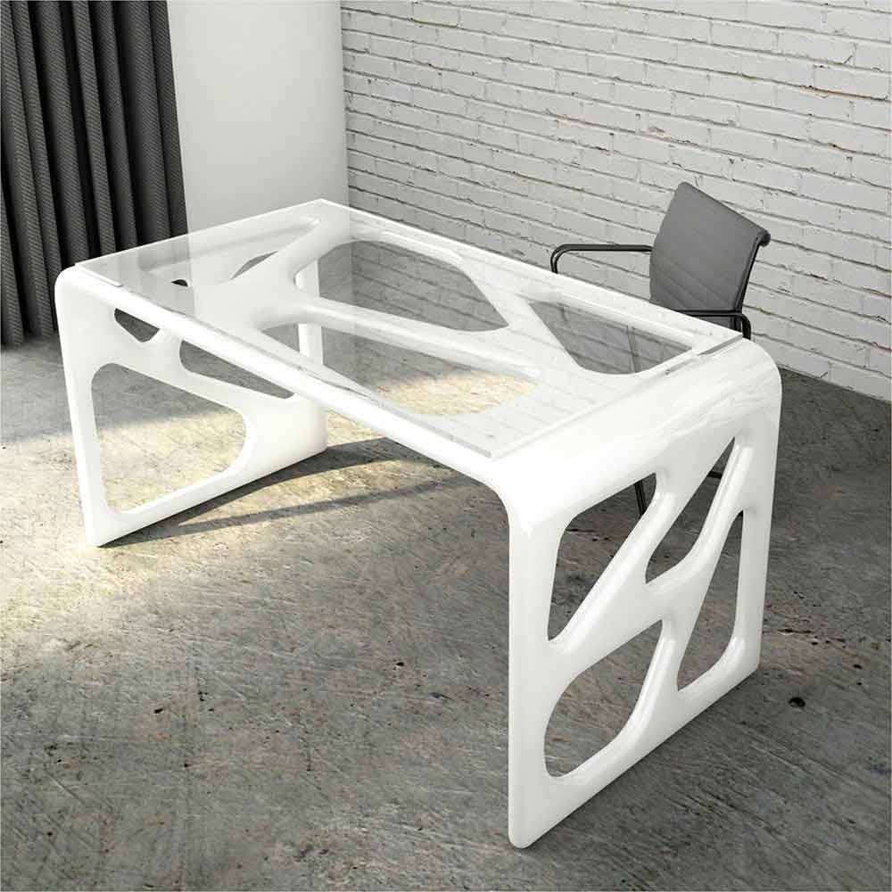 Membranes, cells and various organic structures have inspired this desk which furnishes the home and office with unusual elegance.