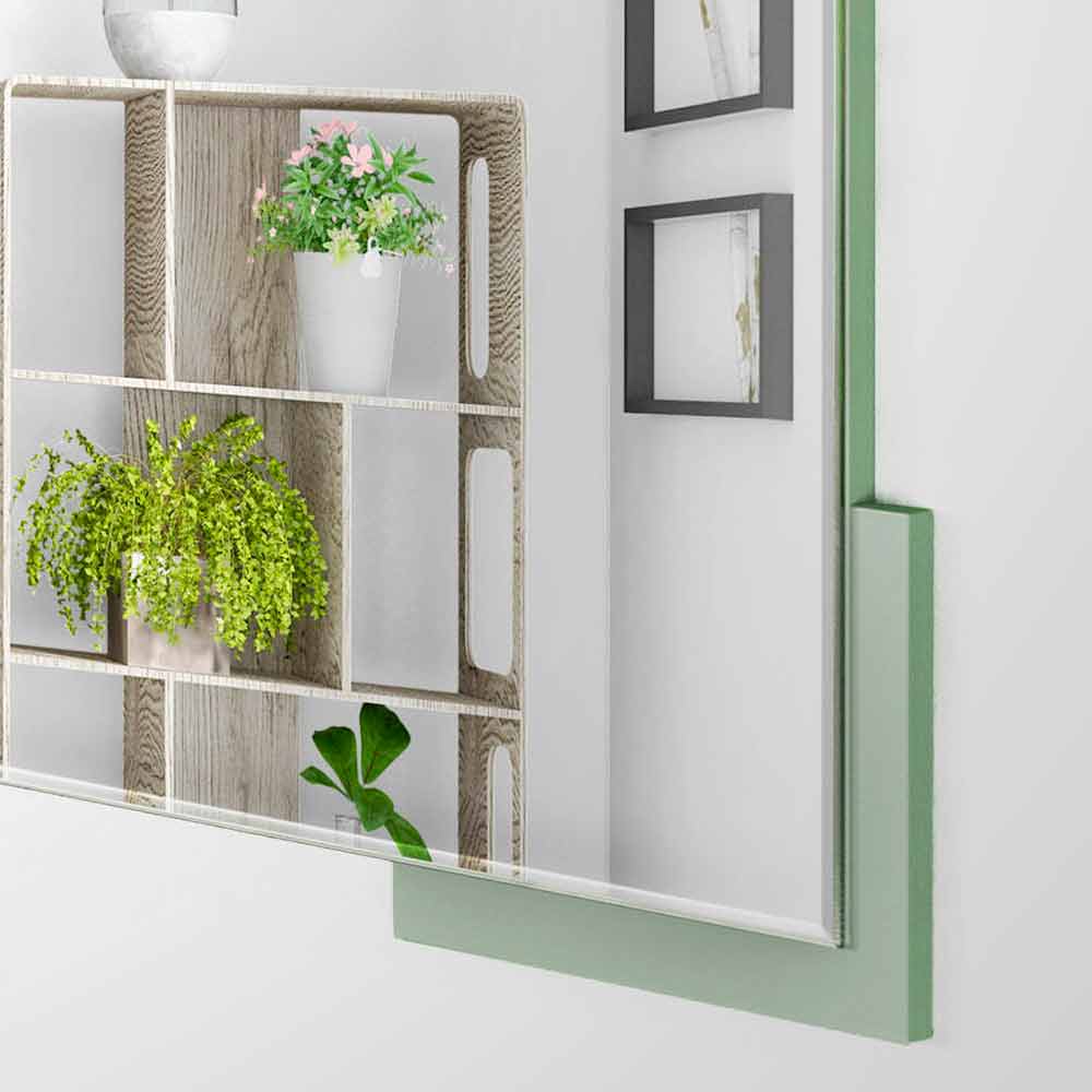 Modern wall mirror, square geometric design, in green wood and made in Italy.