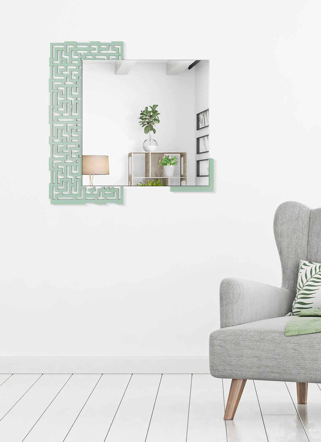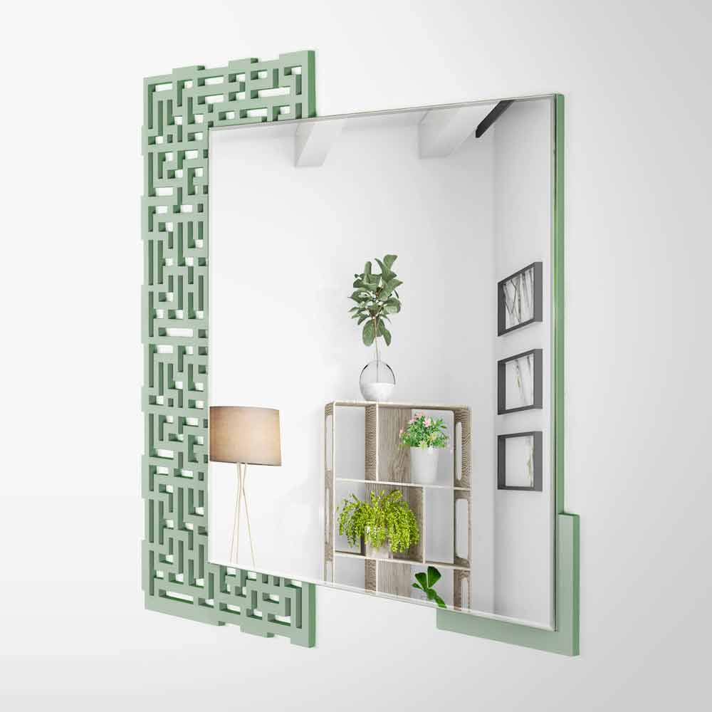 Modern Design Square Wall Mirror in Decorated Green Wood - Labyrinth
