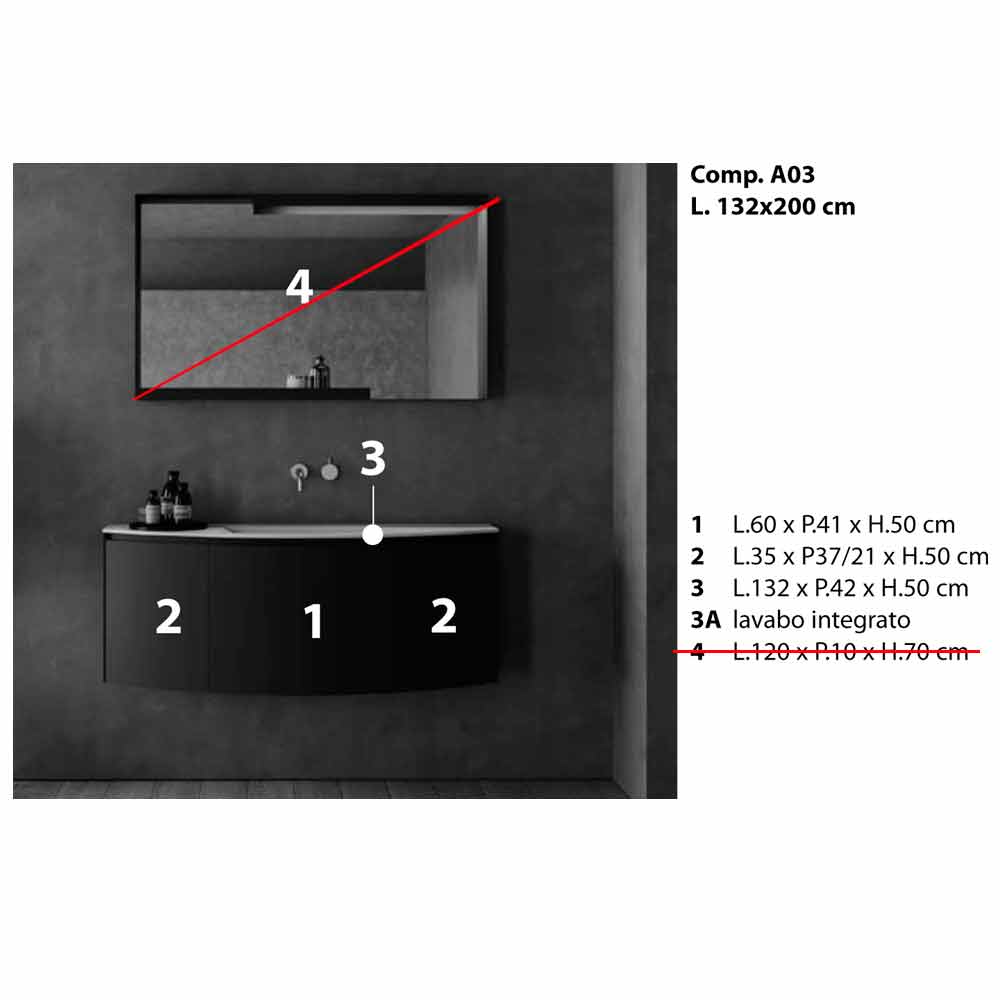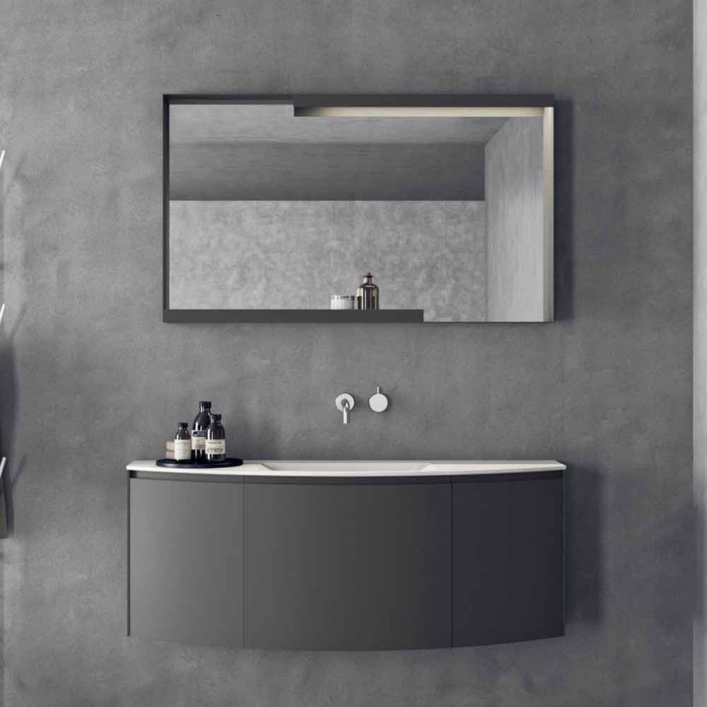 Suspended bathroom composition, curvilinear and with a modern design, entirely made in Italy.