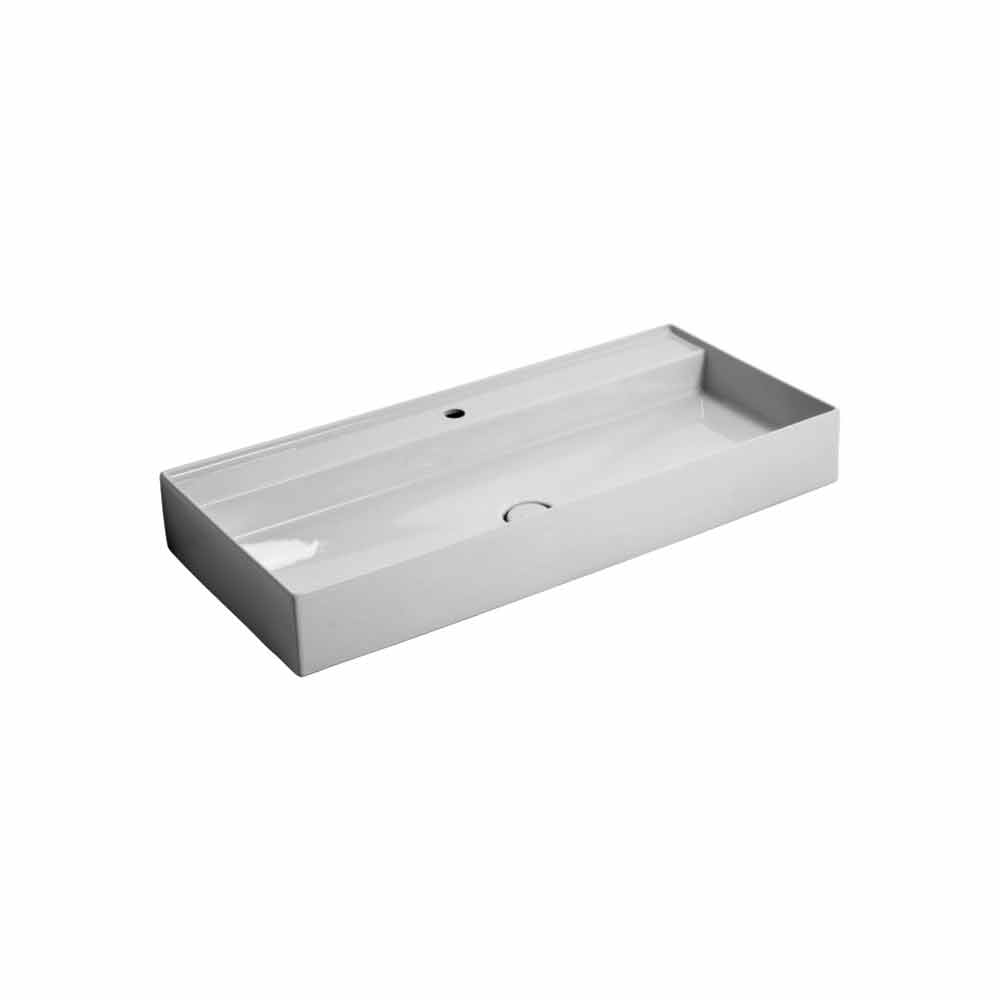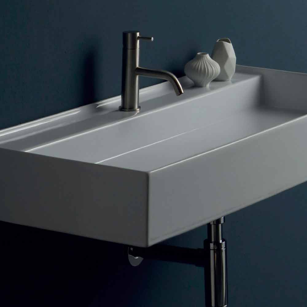 Sun modern design ceramic wall-hung washbasin 100x45 cm, made in Italy