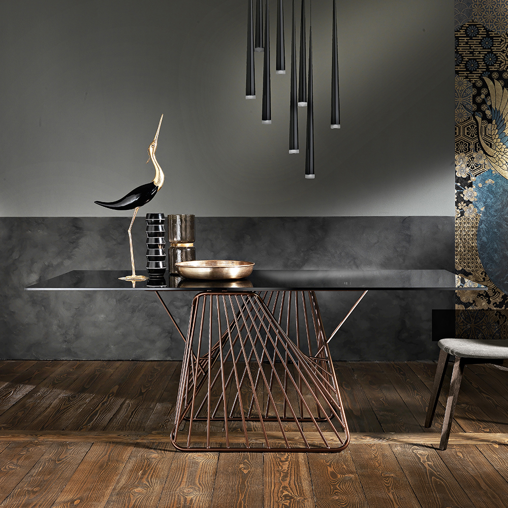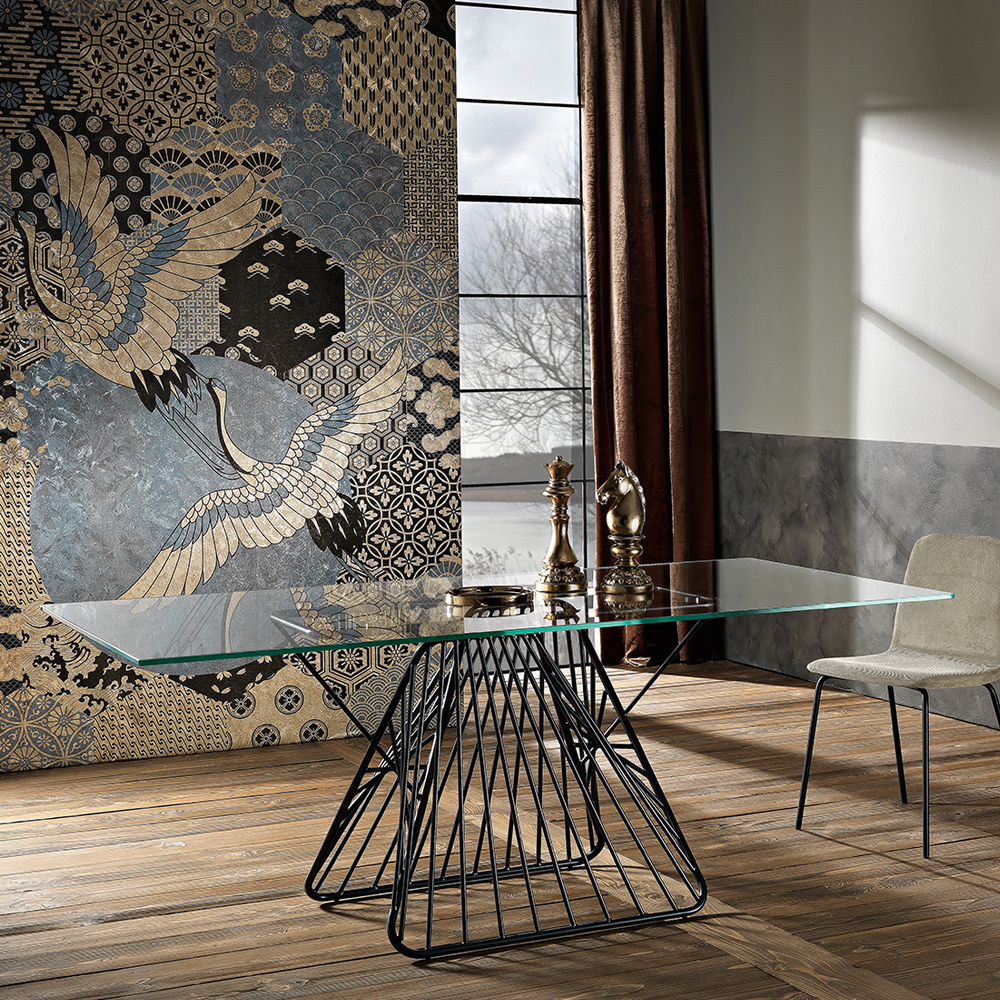 Mitia is an amazing fixed table realized in Italy with a painted metal base and tempered glass surface (thickness 12mm).