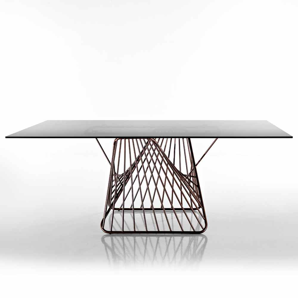 Modern design table in tempered glass made in Italy, Mitia
