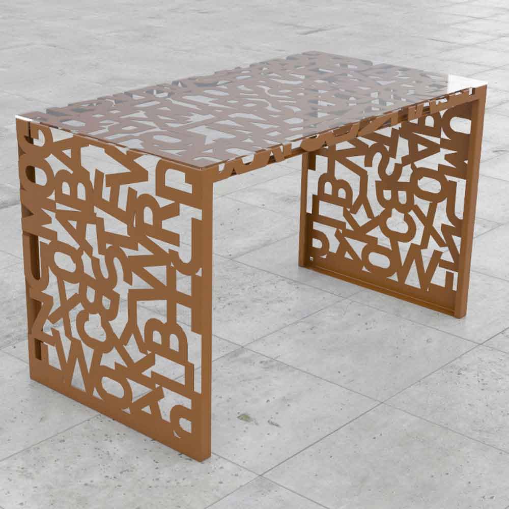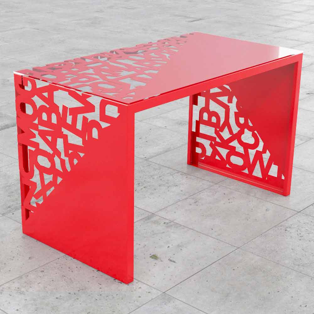 Kattedra comes from a bended single metal plate, embroidered with laser-cutting.