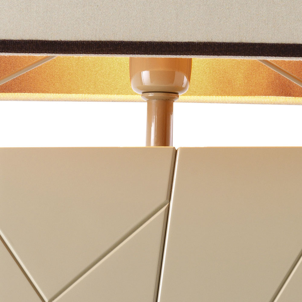 The Zarafa lamp has a solid lacquered solid wood structure, chosen between two beige and black colors with a fabric hat.