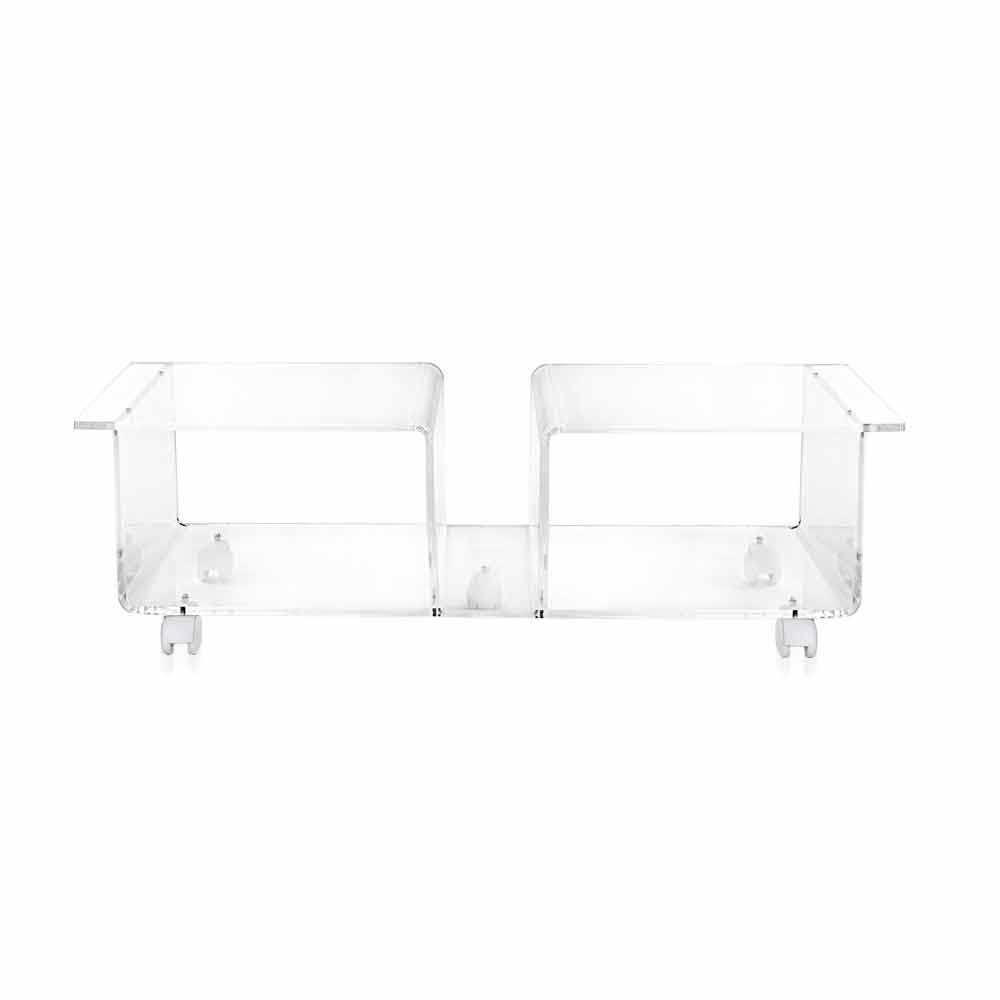 Mago is a multifunctional TV set holder, CD, books and magazines shelf, made of 10mm thick PMMA in 100% virgin plexiglas, CD, books and magazines shelf. It can be used also for tablets, mobile phones and pc. Mago has 4 wheels and can be carried anywhere in the house.