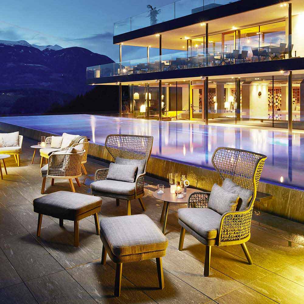 Thanks to its functionality and maximum comfort it will be perfect for furnishing outdoor environments such as terraces, swimming pools, gardens; but it finds perfect placement also inside, in the living area.