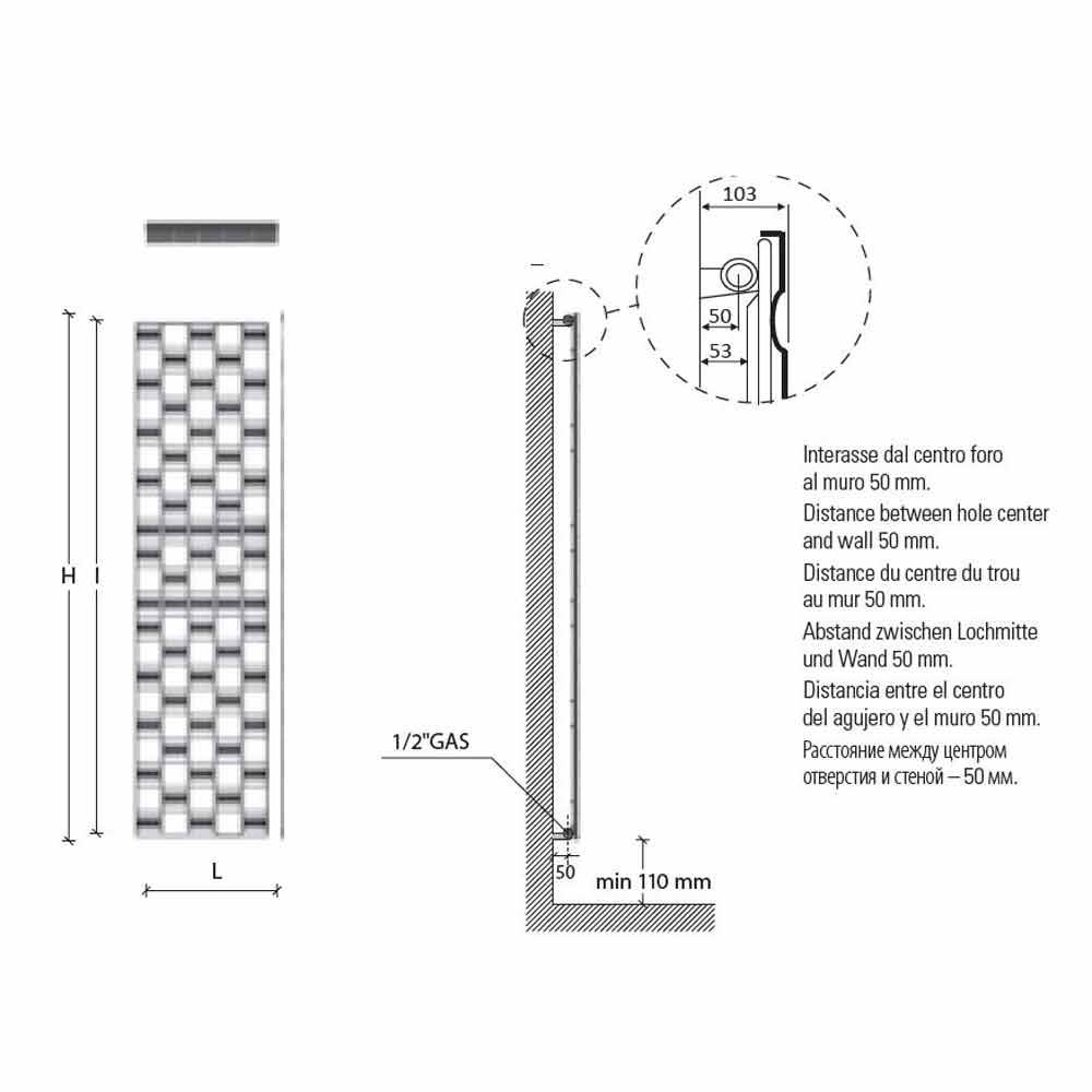 - H 1815 x L 503 x Inter. 1760 mm x Output w (Δt50 *) 815; Yield w (Δt30 *) 429; Yield w (Δt26 *) 358