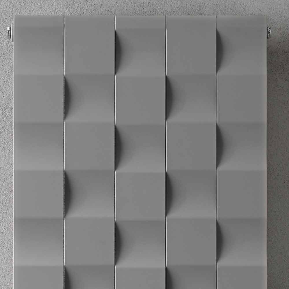 Vertical wall-mounted 5-bar steel radiator with modern design, made in Italy.