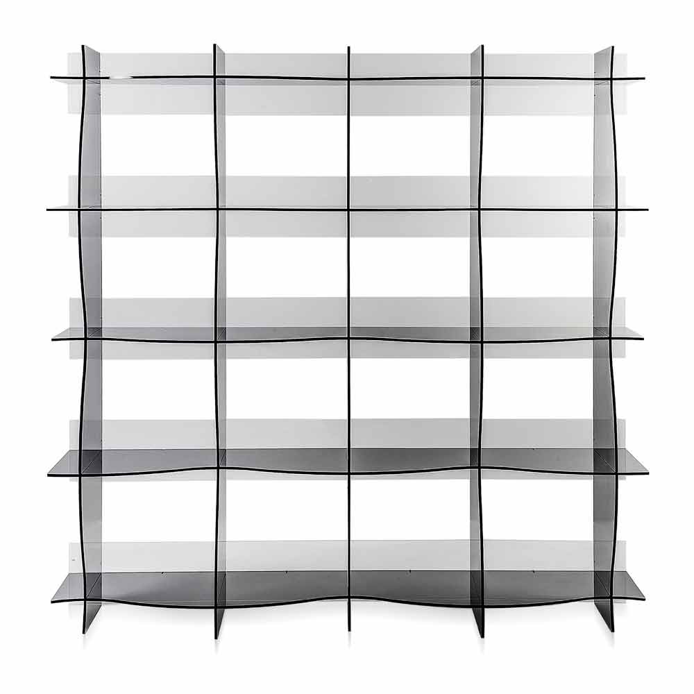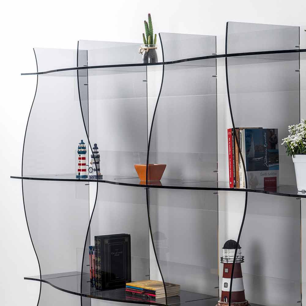 Modern design wall mounted bookcase Pam, fumé finish, made in Italy