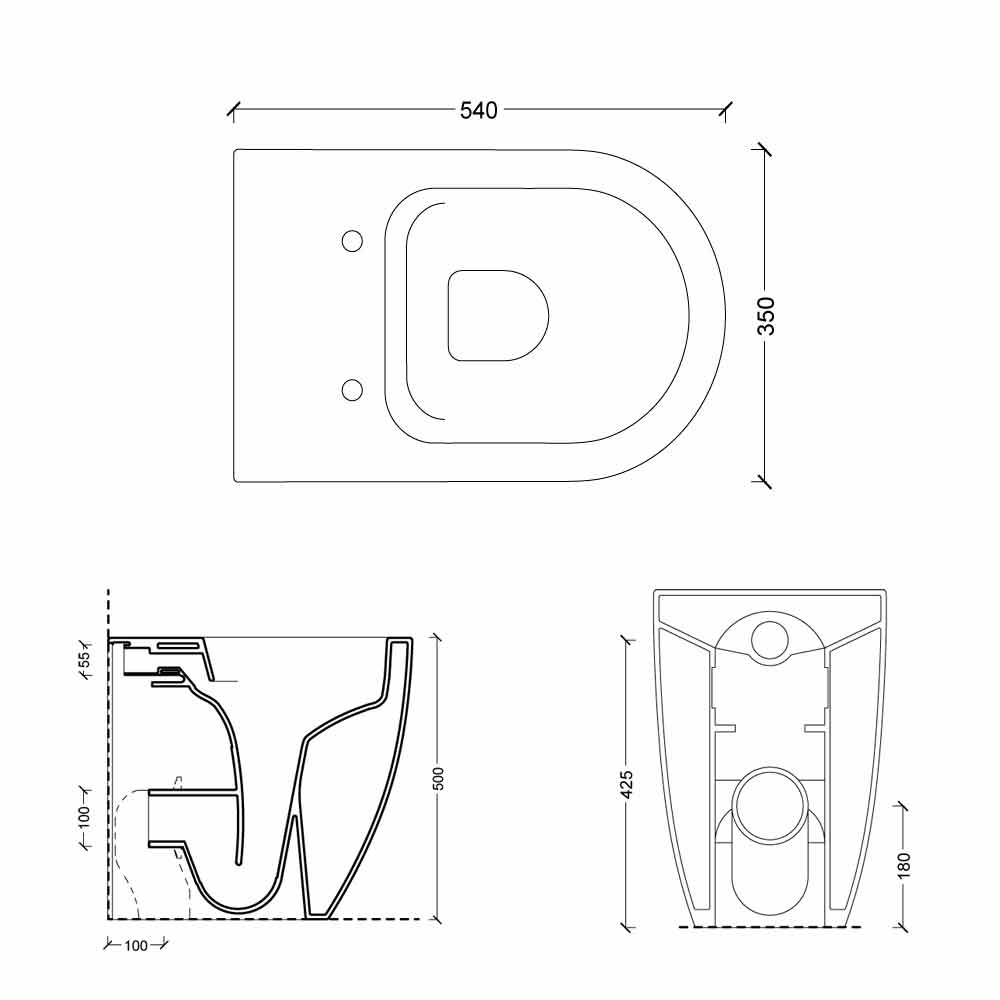 White ceramic toilet vase, modern design Shine Square H50 Rimless
