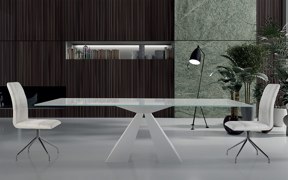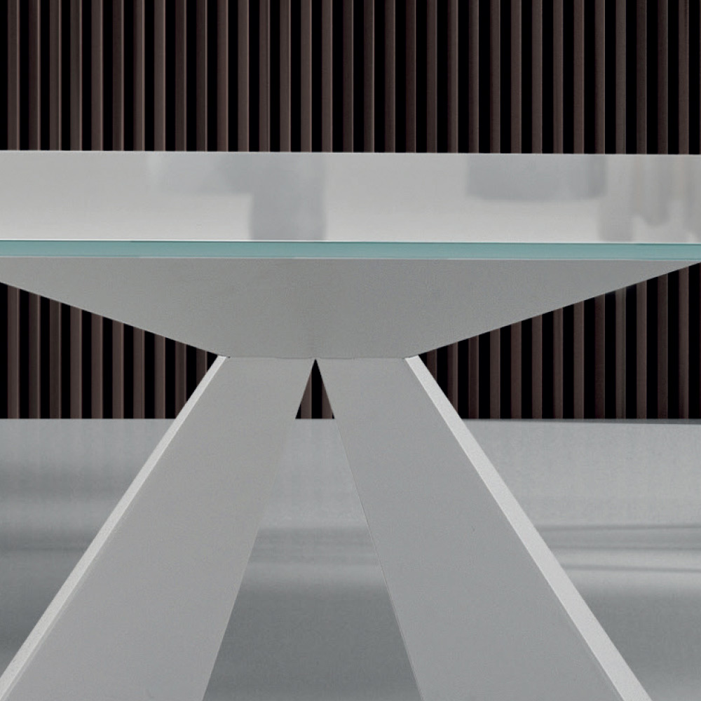 Modern Dining Table in Glass and White Steel Made in Italy - Dalmatian