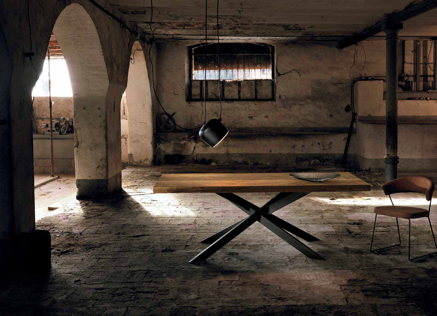 dining table characterized by a modern and robust design, with simple and delicate lines.