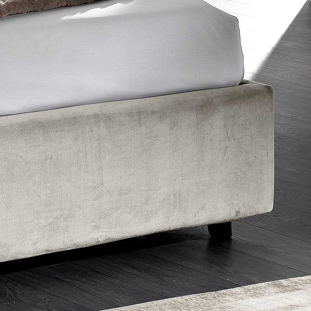 - Headboard: Element 1 Quilted velvet col. 31 light gray - Element 2 and bed frame Smooth velvet col. 34 volcano